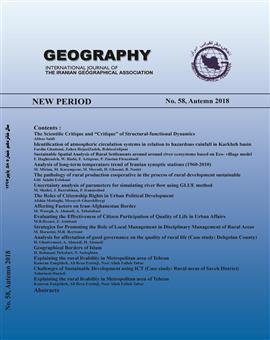 6. حنفی،ع.، خوشحال دستجردی، ج.، اوصانلو، ع. (1392). ارزیابی شاخص دمای موثر استاندارد در نیمه غربی کشور به منظور برنامه ریزی فعالیت نیروهای نظامی و انتظامی. پژوهشنامه مطالعات مرزی، سال دوم، شماره 2، صص23-1.