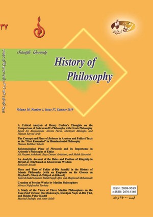 الموضوعات : Philosophical thoughts in ancient Iranعلی ناظمی اردکانی 1 , رضا داوری اردکانی 2 , مالک حسینی 3