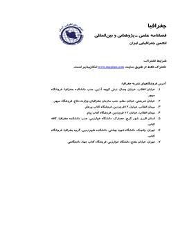 4. ثروتی، م.، جعفرزاده، ع. ا.، حیدری، ا.، و شهبازی، ف. (1390)، تأثیر ژئومورفولوژی بر نمودهای خاکساختی آهک در برخی خاک¬های جنوب شهرستان اهر. مجله دانش آب و خاک، 21 (1): 43-55؛