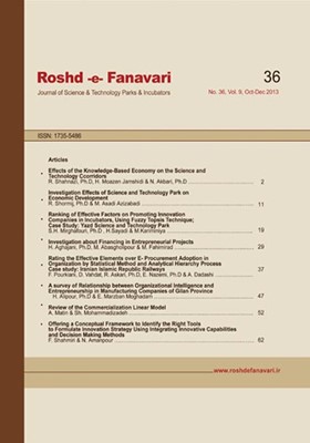 Subject Areas : زيرساختهاي توسعه فناوري و نهادهاي پشتيبان توسعه فناوريHamidereza Alipour 1 , Effat Marzban Moghadam 2