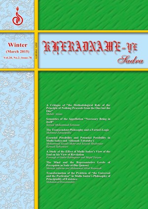 One of the logical discussions which undergoes serious changes by accepting the principiality of existence is the problem of “the universal and the particular”. In the light of the principiality of existence and its ramifications, Mulla Sadra transformed the theory of all philosophers in this regard and reconstructed this problem in accordance to the principles of his own ontological philosophy. In his view, the criterion for universality is the intellectual existence, and the criterion for particularity is the particular, physical, and ideal existence. The known has to be abstracted from the particular, physical, and ideal existence in order to reach the level of universality. This abstraction is a truth different from the superficial abstract of other philosophers and can be called “promotional abstraction”. Mulla Sadra believes that the famous problem of the “gathering of universality and particularity” cannot be resolved based on the principles of other philosophers, whereas it is possible to do so on the basis of his philosophy. Moreover, he maintains that commonality means the ontological relation of an intellectual existent to individuals and not the potential presence of quiddity in them.
