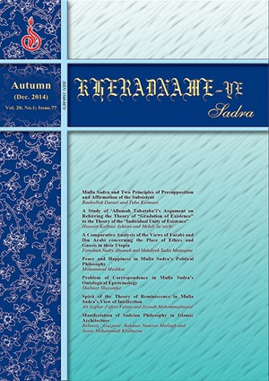 A study of the principles dominating philosophical systems reveal some new aspects of philosophers’ ideas. In this paper, by examining the principle of “the affirmation of an object for another object is presupposed for the affirmation of the subsistent”, which is known as the principle of affirmation, its consequences and its necessary interrelation with the principle of presupposition are explored. Since some authorities do not agree with the union of these two principles, while studying them, the various dimensions of their interaction are also analyzed. Some thinkers believe that they are concomitant with each other, while some others maintain that there is contrariety between them wherein the whatness and existence of each principle depends on those of the other. There are also two interpretations of the principle of presupposition which are, to some extent, rooted in accepting or rejecting the principle of the affirmation of the subsistent. Some Islamic philosophers also believe that accepting the principles of the affirmation of the subsistent and mutual copulative existence between them is one of Mulla Sadra’s innovations. They maintain that, in this way, he has put an end to the old argument of philosophers concerning the quality of the realization of secondary intelligibles and created a union between Platonists and the Peripatetics.