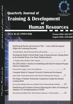 Nowdays, training is recognized as one of the most important factors that increase the effectiveness and efficiency of employees. Social media has been also increasingly used in employee training in recent years. Therefore, the purpose of this study is to identify the value of social media in organizational learning through finding the perspectives of training managers and experts, then to emerge a model of social media usage in employee’s training. This qualitative study is based on grounded theory approach. The research data were collected through semi-structured interviews with 15 managers and training experts of banks in Tehran who were selected by random sampling. Data analysis was performed in three stages of open coding, axial coding, and selective coding, and based on this a qualitative model of research was designed. The results of this study reveal the extraction of over 110 initial codes of interviews and 78 concepts and 18 categories in the paradigmatic paradigm including: central category (interactive technology-based learning), causal conditions (senior management support, change management, Competency-based HRM, Audience-driven approach), Contextual Conditions (corporate organizational culture, organizational agility, organizational policies, technological infrastructure), Interventional Conditions (Poor Technological Infrastructure, Inadequate Financial Resources, Lack of Staff Awareness), Strategies (Knowledge Management, Teamwork activities), Consequences (Reducing training costs, Improving employee performance, Training effectiveness, continuous learning).