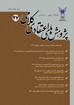 کلید واژه: مهدی نراقی, کلام, نوآوری, ثبوت علم الهی, کیفیت علم الهی ,